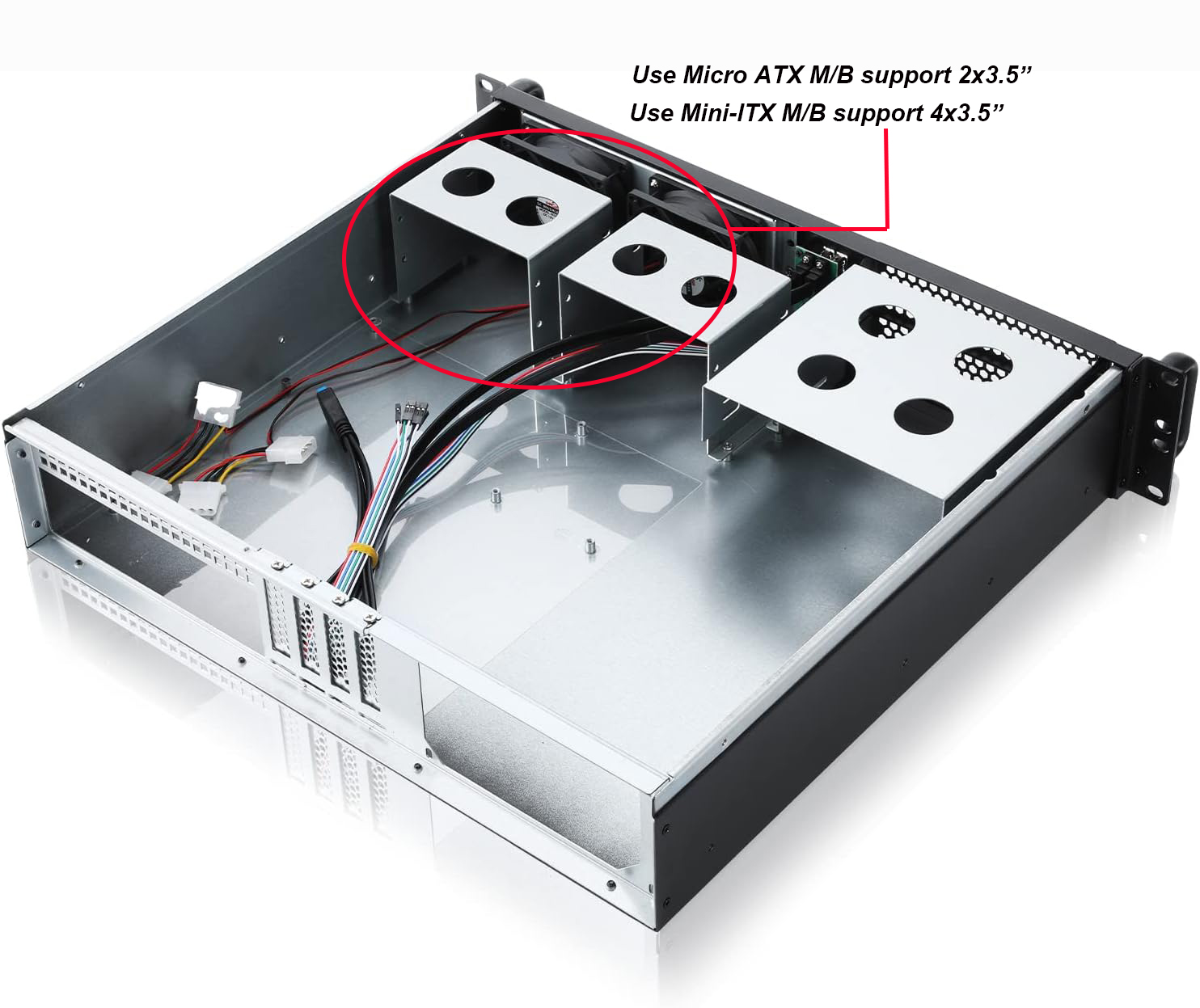 2U Rackmount 2x5.25+4x 3.5 HDD microATX Chassis support ATX Power Supply